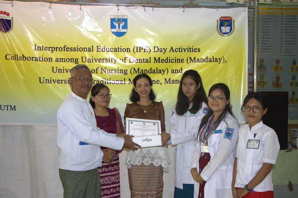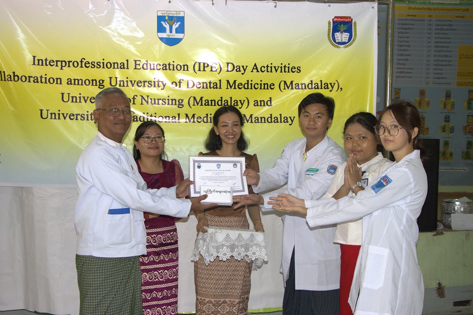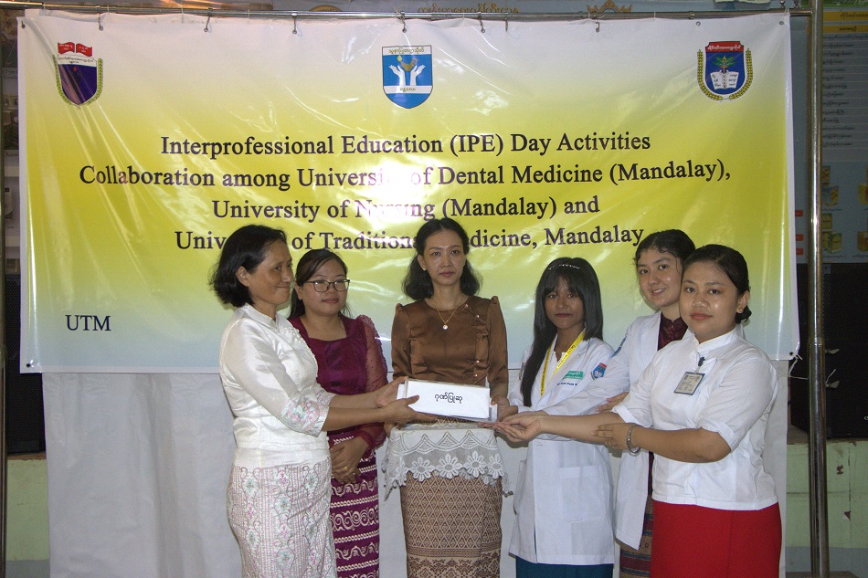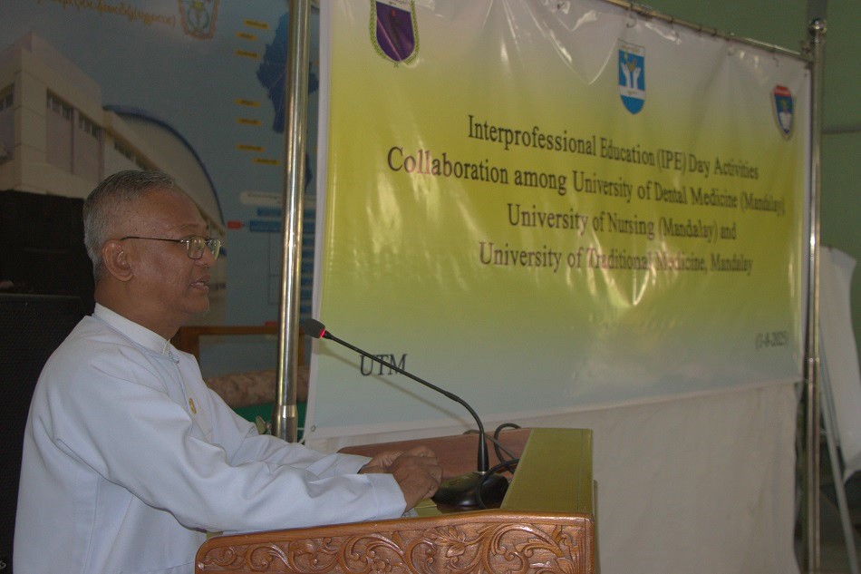 ၂၀၂၅ ခုနှစ် ဩဂုတ်လ၊ (၁)ရက်နေ့၊ နံနက် (၉း၀၀)နာရီတွင် ဧကရာဇ်ခန်းမ၊ တိုင်းရင်းဆေးဝါးထုတ်လုပ်ရေးလုပ်ငန်းစက်ရုံဝန်းအတွင်း၌ Interprofessional Education (IPE) Day Activities Collaboration with University of Nursing (Mandalay), University of Dental Medicine (Mandalay ) and University of Traditional Medicine ဖွင့်ပွဲ အခမ်းအနား ကို ကျင်းပပြုလုပ်ခဲ့ပါသည်။ ယင်းအခမ်းအနားတွင် တိုင်းရင်းဆေးတက္ကသိုလ် ပါမောက္ခချုပ်၊ ပါမောက္ခဒေါက်တာ သိန်းဇော်လင်း ၊ ဒုတိယပါမောက္ခချုပ်(စီမံ)၊ ဒေါက်တာမြင့်မြင့်သန်း၊ ဒုတိယပါမောက္ခချုပ်(သင်ကြား)၊ ပါမောက္ခဌေးလွင်၊ တိုင်းရင်းဆေး တက္ကသိုလ်မှ ပါမောက္ခ/ဌာနမှူးများ၊ ဆေးတက္ကသိုလ် မန္တလေးမှ ပါမောက္ခ/ဌာနမှူး ပါမောက္ခဒေါက်တာလှမိုး၊ ပါမောက္ခ/ဌာနမှူး ဒေါက်တာကျော်မျိုး၊ သွားဆေး တက္ကသိုလ် မန္တလေးမှ ပါမောက္ခ/ဌာနမှူးနှင့် ကြီးကြပ် ဆရာများ၊ သူနာပြုတက္ကသိုလ် မန္တလေးမှ ကြီးကြပ်ဆရာ/မများ၊ တိုင်းရင်းဆေးတက္ကသိုလ် မော်ကွန်းထိန်း ဦးမြင့်အေး၊ နှင့် ကြီးကြပ် ဆရာ/မများ၊ တက္ကသိုလ်(၃)ခုမှကျောင်းသား/သူများ တက်ရောက်ခဲ့ ကြပါ သည်။ အခမ်းအနားကို ဆက်လက်ကျင်းပရာ တက္ကသိုလ်(၃)ခုမှ ကျောင်းသား/သူများ က မိမိတို့အုပ်စုများ အလိုက် Group Work များ၊ Group Presentation များ အသီးသီးပြုလုပ်ခဲ့ကြပြီး ဆုရ Group များအား ပါမောက္ခချုပ်၊ ဒုတိယပါမောက္ခချုပ်(စီမံ)နှင့် ဒုတိယပါမောက္ခချုပ် (သင်ကြား)တို့က Appreciation, Outstanding, Popular award, Certificate စသောဆုအသီးသီးများ ချီးမြှင့်ပေးအပ်ခဲ့ကြပါသည်။