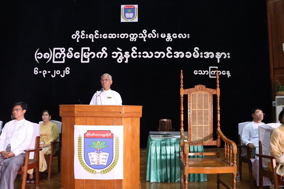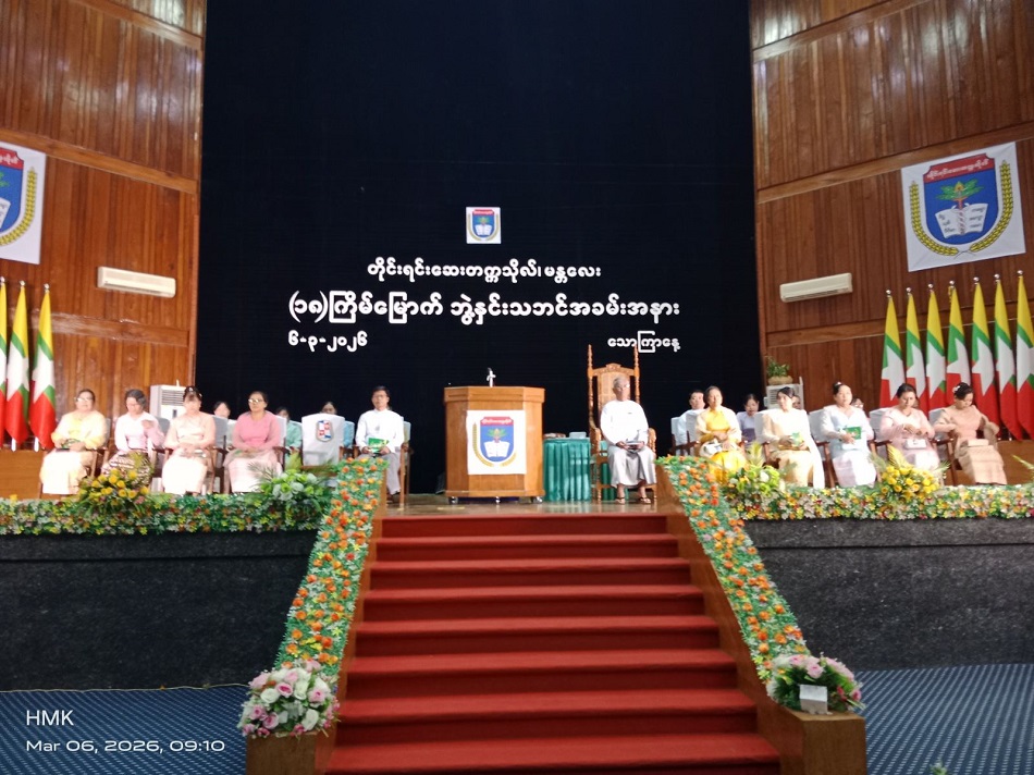 ကျန်းမာရေးဝန်ကြီးဌာန၊ တိုင်းရင်းဆေးပညာဦးစီးဌာန၊ တိုင်းရင်းဆေးတက္ကသိုလ် မန္တလေး၏ (၁၈) ကြိမ်မြောက်ဘွဲ့နှင်းသဘင်အခမ်းအနားကို ယနေ့ (၇-၃-၂၀၂၆)ရက်နေံ နံနက် (၉:၀၀) နာရီတွင် မန္တလေးတက္ကသိုလ် ဘွဲ့နှင်းသဘင်ခန်းမ၌ ကျင်းပသည်။ ဦးစွာ တိုင်းရင်းဆေးတတက္ကသိုလ်၊ ပါမောက္ခချုပ် ပါမောက္ခဒေါက်တာသိန်းဇော်လင်း၊ ပညာရေးအဖွဲ့ဝင်များနှင့် စီမံခန့်ခွဲရေး အဖွဲ့ဝင်များက ဘွဲ့နှင်းသဘင်စင်မြင့်တွင် နေရာယူကြသည်။