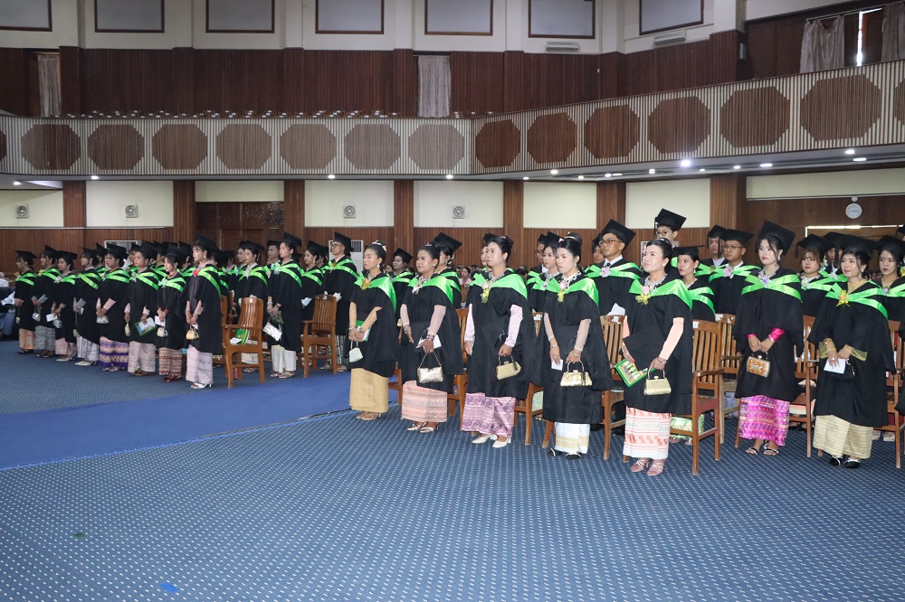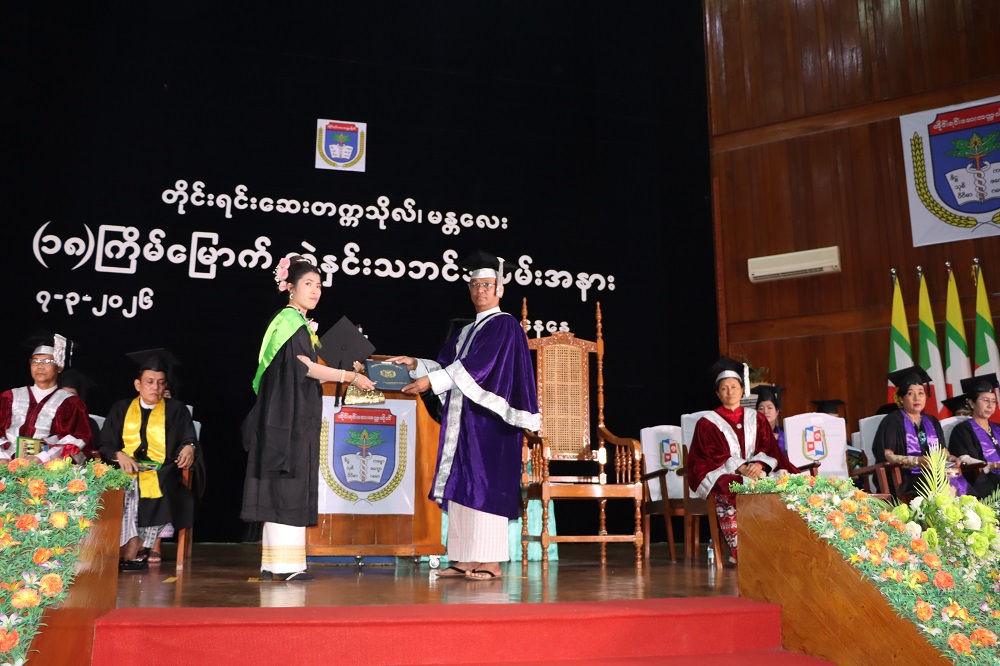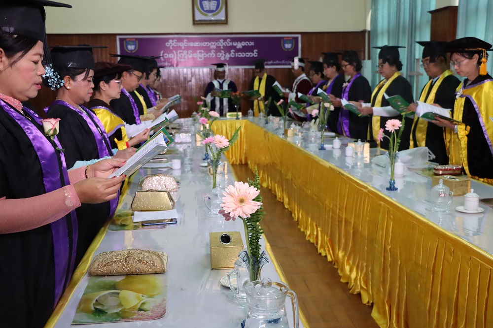 ထို့နောက် ပါမောက္ခချုပ်က ဘွဲ့နှင်းသဘင်ကို ကျင်းပကြောင်း ကြေညာပြီး ဘွဲ့ရမောင်/မယ်များက နဝရတ်ကတိသစ္စာရွတ်ဆိုကြပီးနောက် မြန်မာ့တိုင်းရင်းဆေးပညာ မဟာဘွဲ့၊ မြန်မာ့တိုင်းရင်းဆေးပညာဘွဲ့များအတွက် ကောင်းစွာအောင်မြင် ပေါက်မြောက် ခဲ့ပြီဟု ပညာရေးအဖွဲ့က ကြေညာခြင်းခံရသူ မြန်မာ့တိုင်းရင်းဆေး ပညာမဟာဘွဲ့ M.M.T.M (Master of Myanmar Traditional Medicine) ဘွဲ့ရရှိသူ (၆)ဦး, မြန်မာ့တိုင်းရင်းဆေးပညာဘွဲ့(ပုံမှန်) B.M.T.M (Bachelor of Myanmar Traditional Medicine) ဘွဲ့ရရှိသူ (၅၂)ဦး နှင့် မြန်မာ့တိုင်းရင်းဆေးပညာဘွဲ့(ပေါင်းကူး) B.M.T.M (Bachelor of Myanmar Traditional Medicine) ဘွဲ့ရရှိသူ (၁၂) ဦး တို့အား တိုင်းရင်းဆေးတက္ကသိုလ်၊ ပါမောက္ခချုပ်၊ ပါမောက္ခ ဒေါက်တာသိန်းဇော်လင်း က ဘွဲ့များ ချီးမြှင့်အပ်နှင်းကာ ဘွဲ့ရရှိသူ စာရင်းကို အတည်ပြုလက်မှတ် ရေးထိုးပေးသည်။