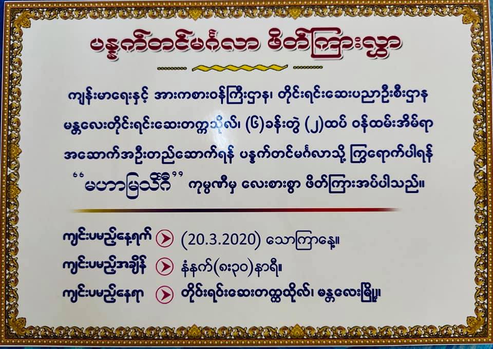 အမှုထမ်း ဝန်ထမ်းအိမ်ရာ အဆောက်အဦးတည်ဆောက်ရန် အတွက် ပန္နက်တင်မင်္ဂလာ အခမ်းအနားကို ယနေ့ ၂၀-၃-၂၀၂၀ နံနက် ၈:၃၀နာရီတွင် ကျင်းပခဲ့သည်။