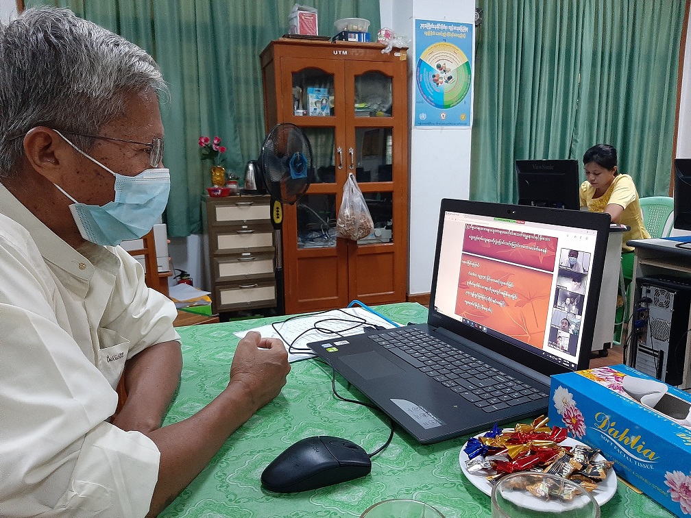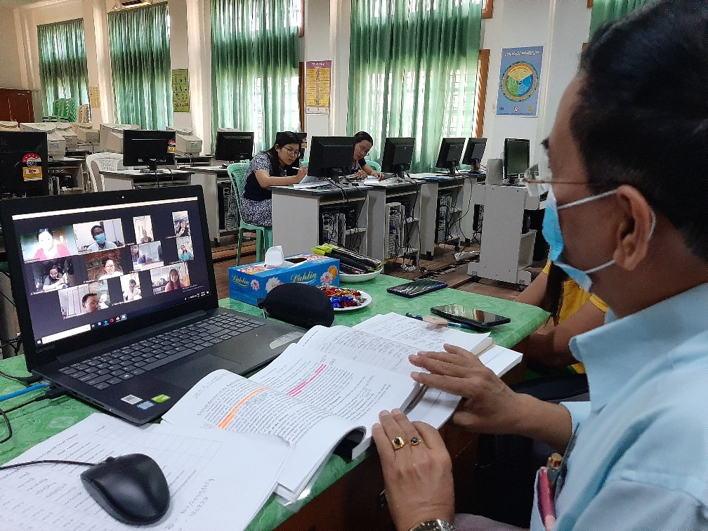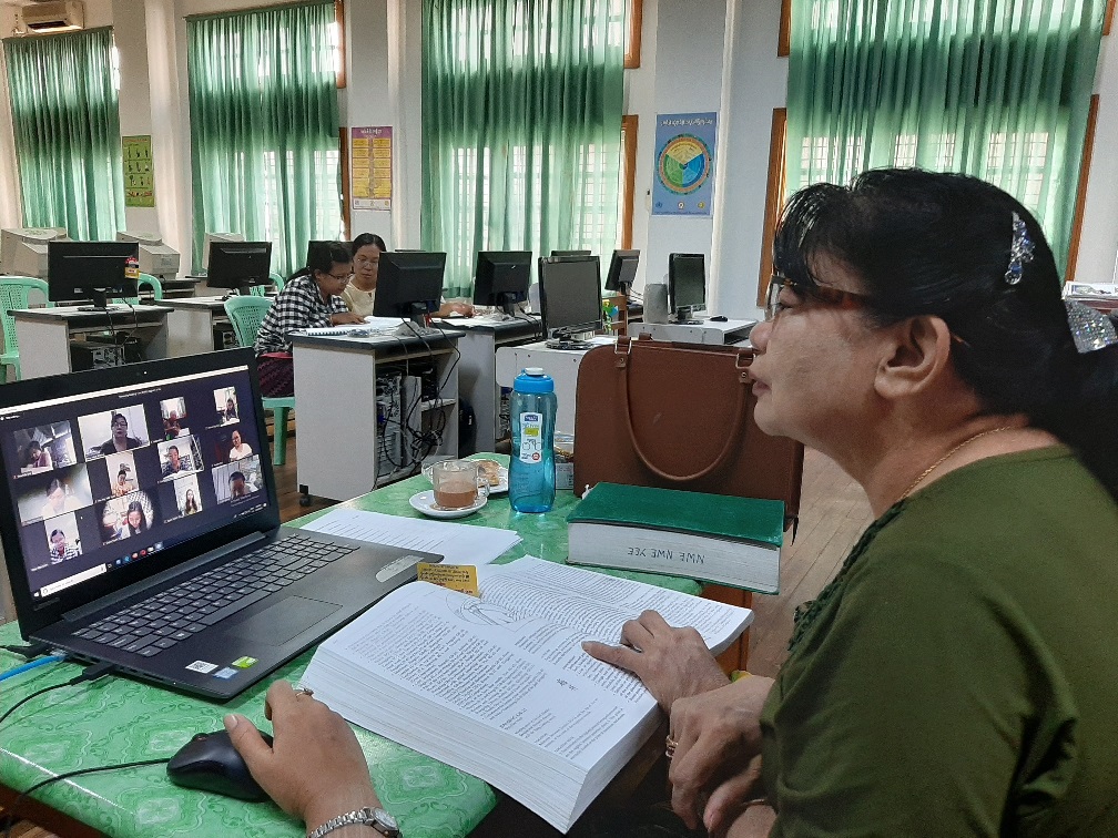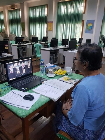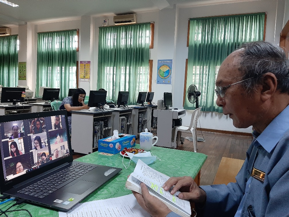 Online Teaching ဖြင့် Zoom app ကိုသုံးပီး အငြိမ်းစား ဂုဏ်ထူးဆောင် ပါမောက္ခ များ၊ ဒုတိယပါမောက္ခများ နှင့်ပထမနှစ် ဒုတိယနှစ်